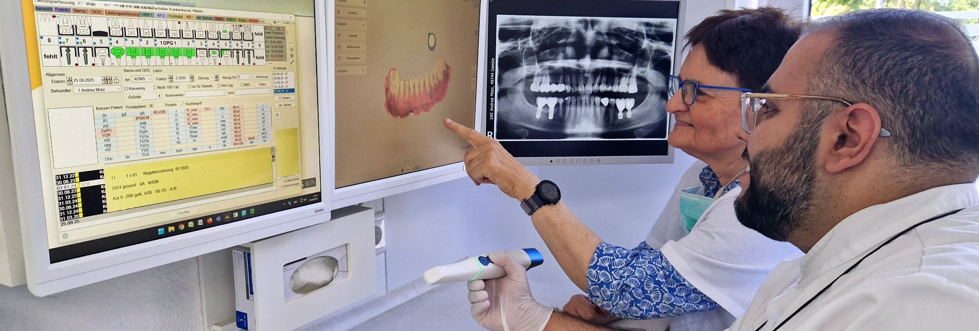 - Bei 1 bis 3 Implantaten erleben Sie die digitale Abformung mit dem modernsten Intraoralscanner