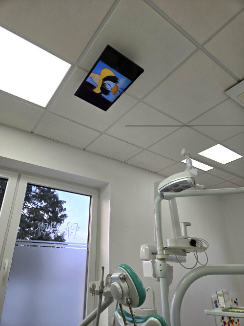 - Im Behandlungszimmer befindet sich eine Magnetwand zum Beschäftigen falls Langeweile aufkommt.